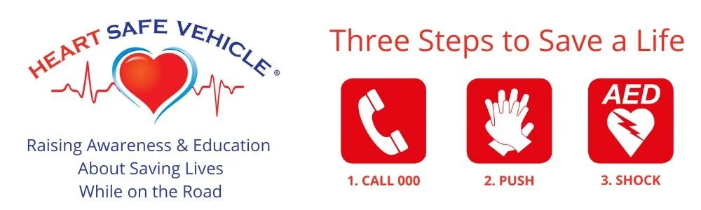 Our Heart Safe Vehicle Program was created to raise awareness and education about the very important 3-STEPS to potentially save a life during a Sudden Cardiac Arrest (SCA) out-of-hospital and about the vital function that defibrillators (AED) can perform in potentially saving a life of a loved one or a total stranger while on the road or travelling across Australia.